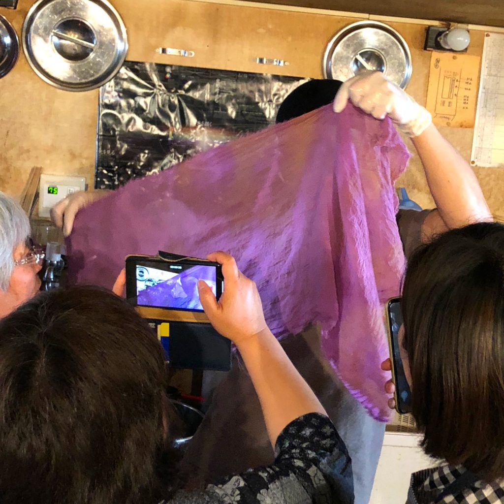 マルチファイバークロスの貝紫染めはあまり聞いたことが無いので、研究者にもこの結果はなかなか興味深いのではないかと思います。ご参加のY様、ありがとうございました。