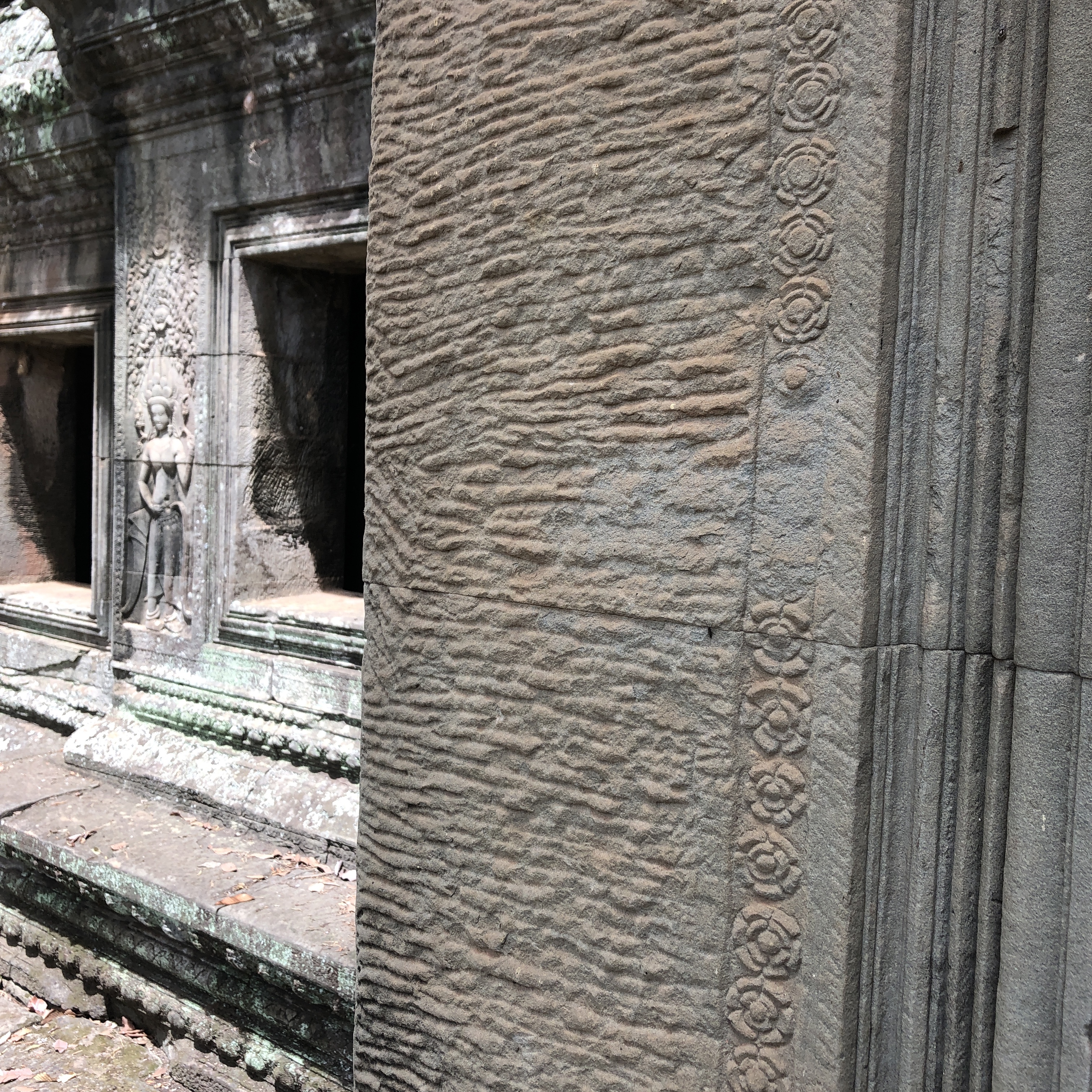 接着面同士をものすごく平たくして乗せて、側面を削るのでしょうけど、驚愕の精度の高さです。こんな構造物が当たり前のようにそこかしこにあるのです。石造建築は全くの素人ですが、1000年近く前にこんなことをしていたクメール人、恐るべしです。