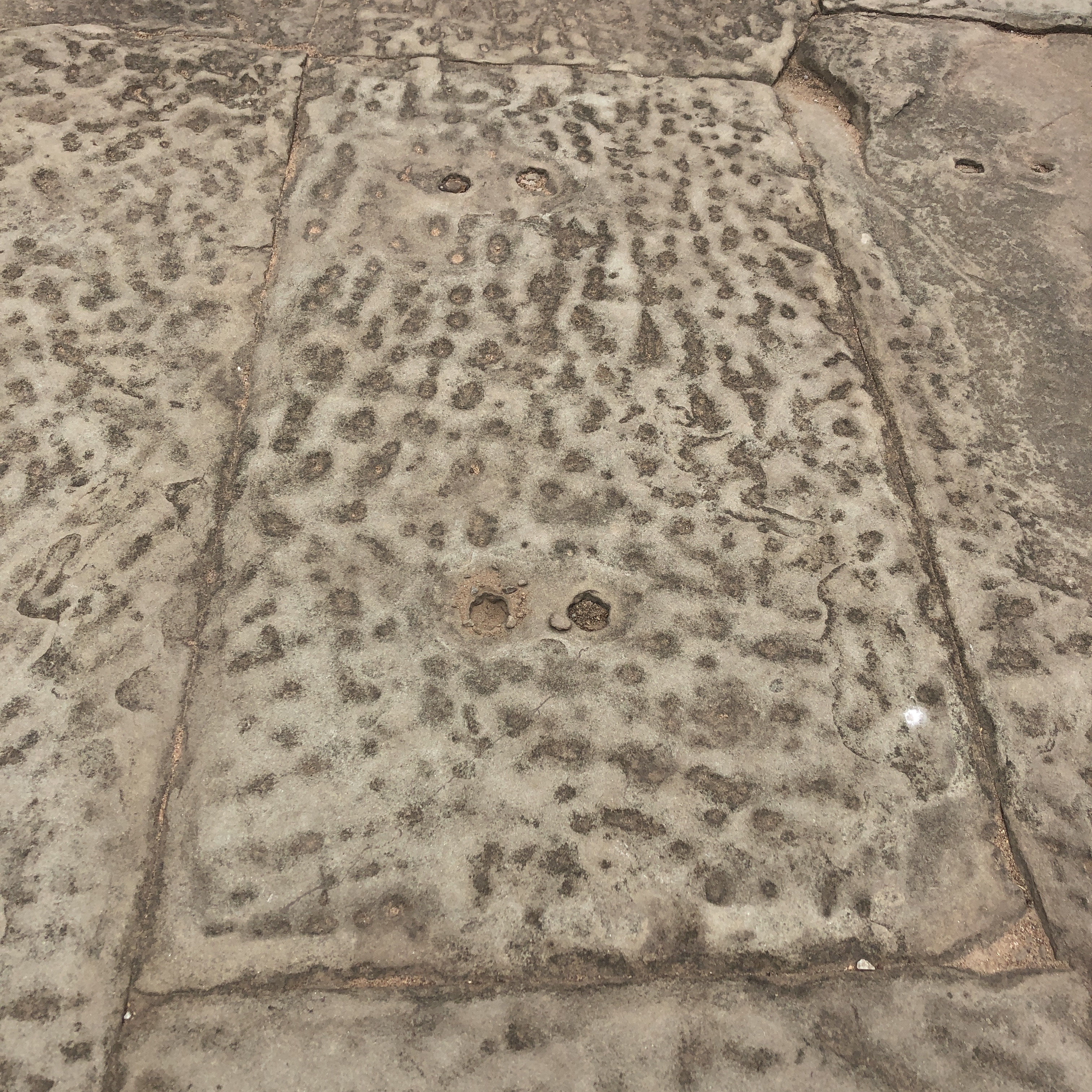 もう一度足元の石に目を向けると、全ての石にこのような穴が2個イチであります。