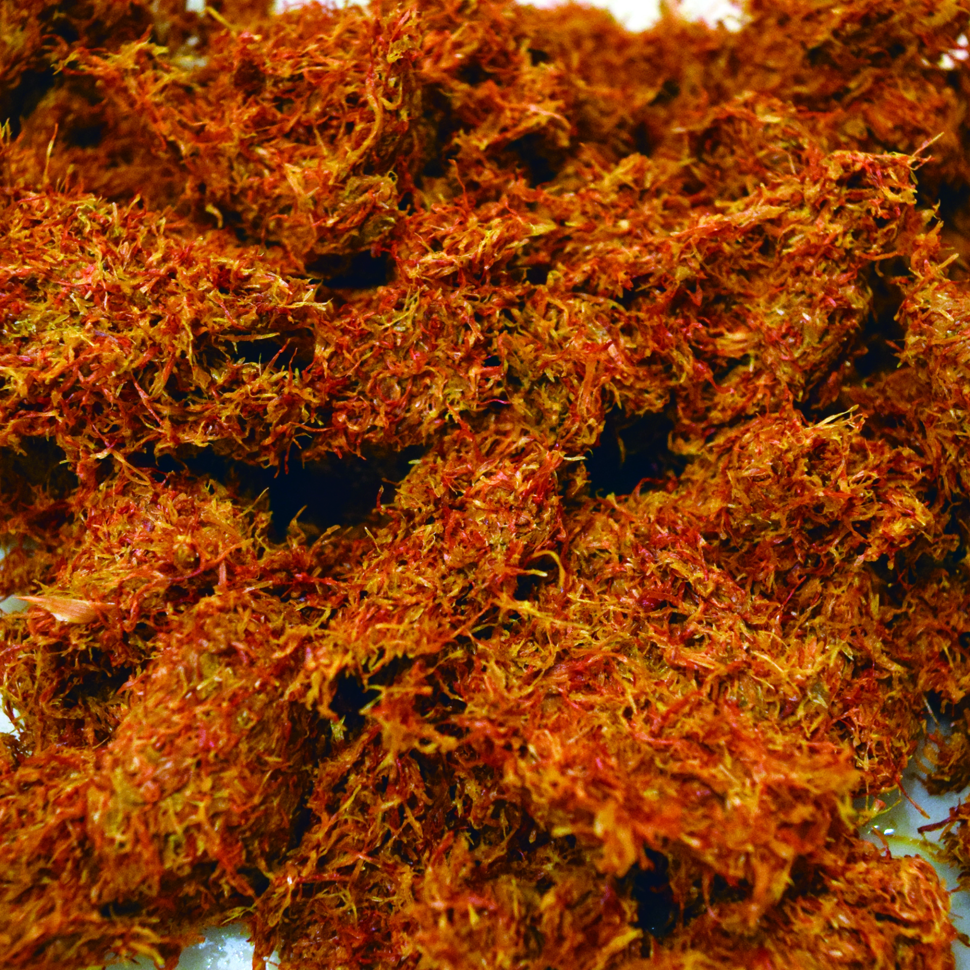 まず紅餅を水ですすぎ黄色素「サフロールイエロー」を洗い落とします。この黄色素は普通に水に溶けますのでどんどん出てきます。しかし主役の赤色素「カルタミン」はアルカリの水にしか溶けません。普通の水ですすいでいる間、赤色素はまだ紅餅の中に留まっています。
